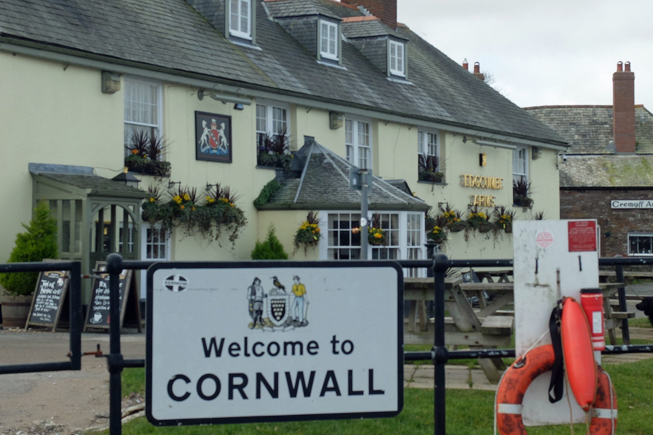 Rob took a few photos of me posing at various Plymouth landmarks as he gave me an ambling tour of the city and we stopped for an al fresco coffee on the hoe. Rob walked me as far as the Cremyll ferry and I continued in shirtsleeves through an easy woodland walk towards Whitsand Bay.