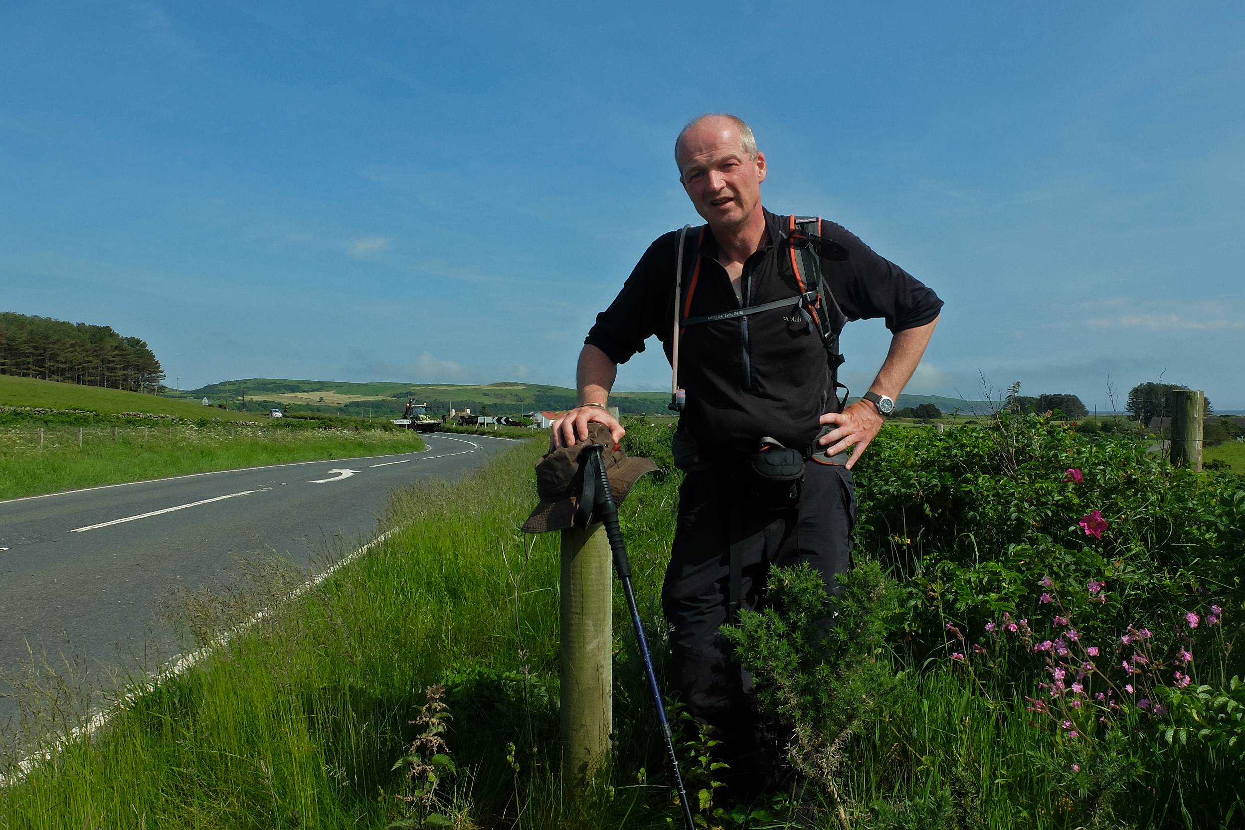 Too soon I was down on the lane again and up onto the A75 to anonymously celebrate my 2,000 miles in a typical DnG way (photo). With seven more miles of fast open road around the MOD bombing range at Luce Sands, tedium set in and I was truly happy to find Snickers parked up where Ray had left it for me in a farmyard.