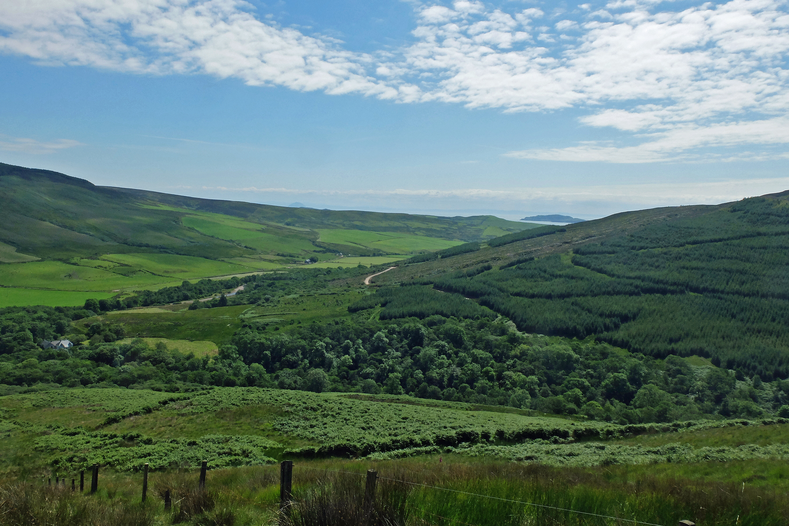 I was to follow the Kintyre Way all day today and I set off along the otter rich foreshore to round Keil Point and head inland along the deserted lane. At last I ventured off-road and began a steep climb up to nearly 1,200 ft over Arnod Hill and into Largiebaan Nature Reserve. All told, I had three hefty climbs giving me far-reaching views over to Ayrshire in the East (photo), Northern Ireland in the South and lastly the islands of Islay and Jura to the Northwest.