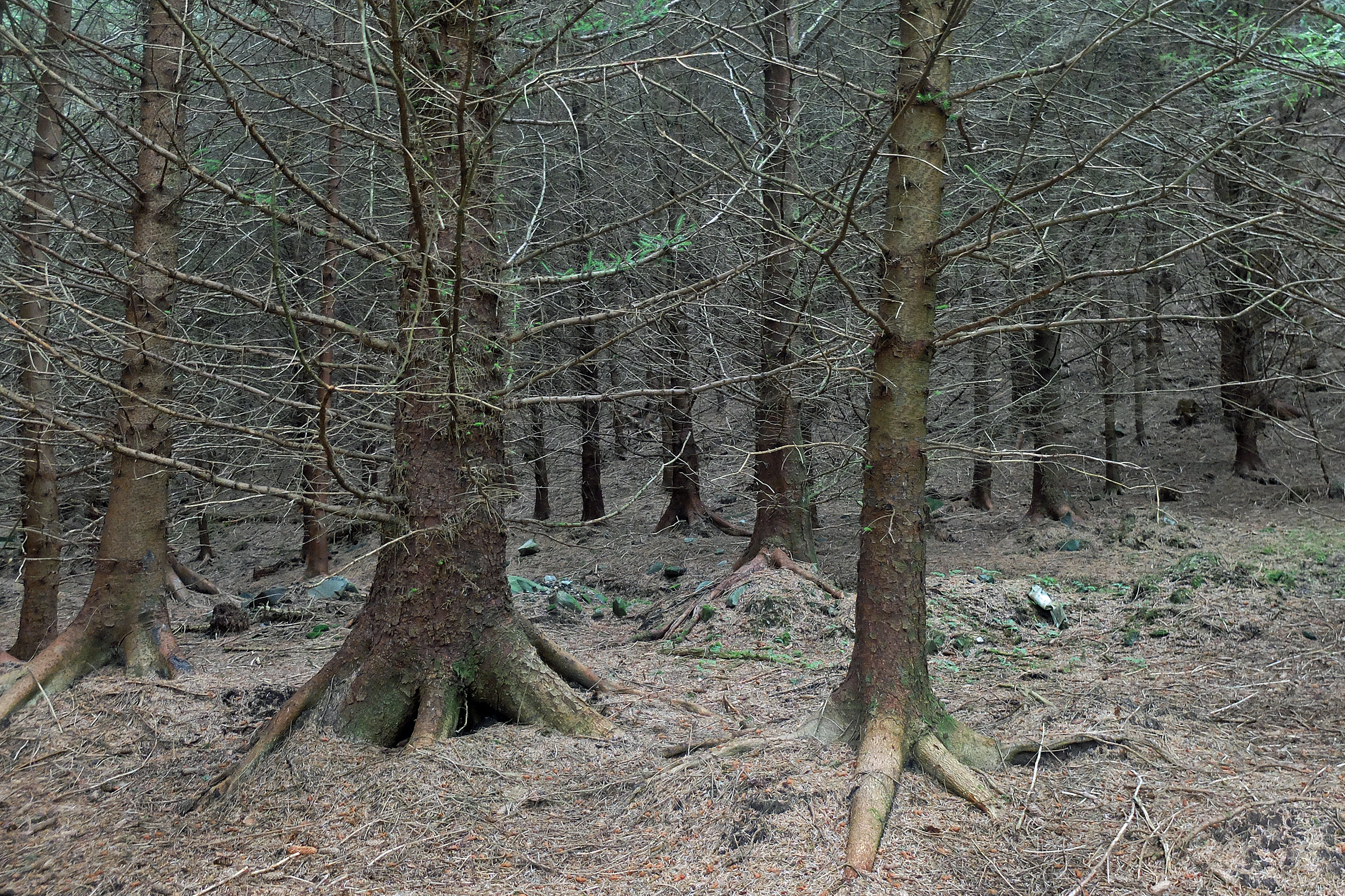 We parted as if good friends with a postcard depicting his house in my hand. I headed into Knapdale Forest to circumnavigate two small peninsulas. This time I stuck religiously to the tracks having decided that any off-track adventure might be foolish with the trees and undergrowth looking utterly impenetrable. After an hour or so the forest thickened into heavily planted conifers and I found myself on a ‘Beaver Trail’ around the hidden Loch Coille-Bharr. Disappointingly I saw no trace or sign of the recently reintroduced Scottish beaver and instead found myself walking tracks edged by high tree walls cutting through slightly foreboding and oppressive forestry.