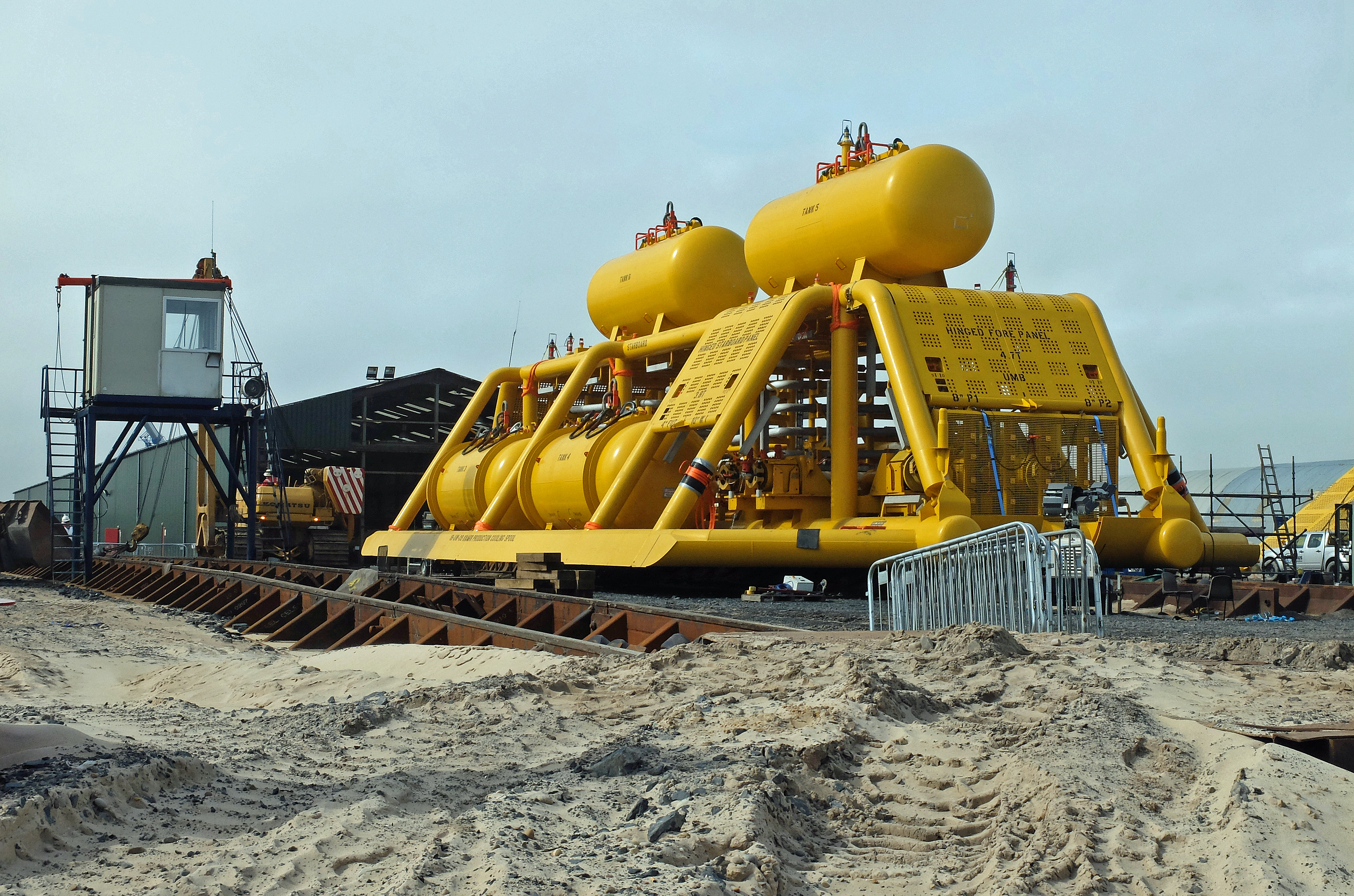 I could have walked to Wick via the A99 but in keeping to the cliffs around Dunscanby Head I had nicely avoided a chunk of ‘A’ road. Unfortunately I had to rejoin it for a few miles, but quickly made a bee-line for Sinclair’s Bay and a stretch of beach walking. The tide was in and I found myself dodging the waves as they drove their way up the sand and pushed me towards the shingle of the high tide line. I passed a huge engineering project in the form of a sub-sea ‘pipeline bundle’ and marvelled at the size of kit they were preparing to launch into the sea to lay on the sea-bed and return gas back for us to burn. I then had a small river to wade, my fourth of the journey so far….I think.