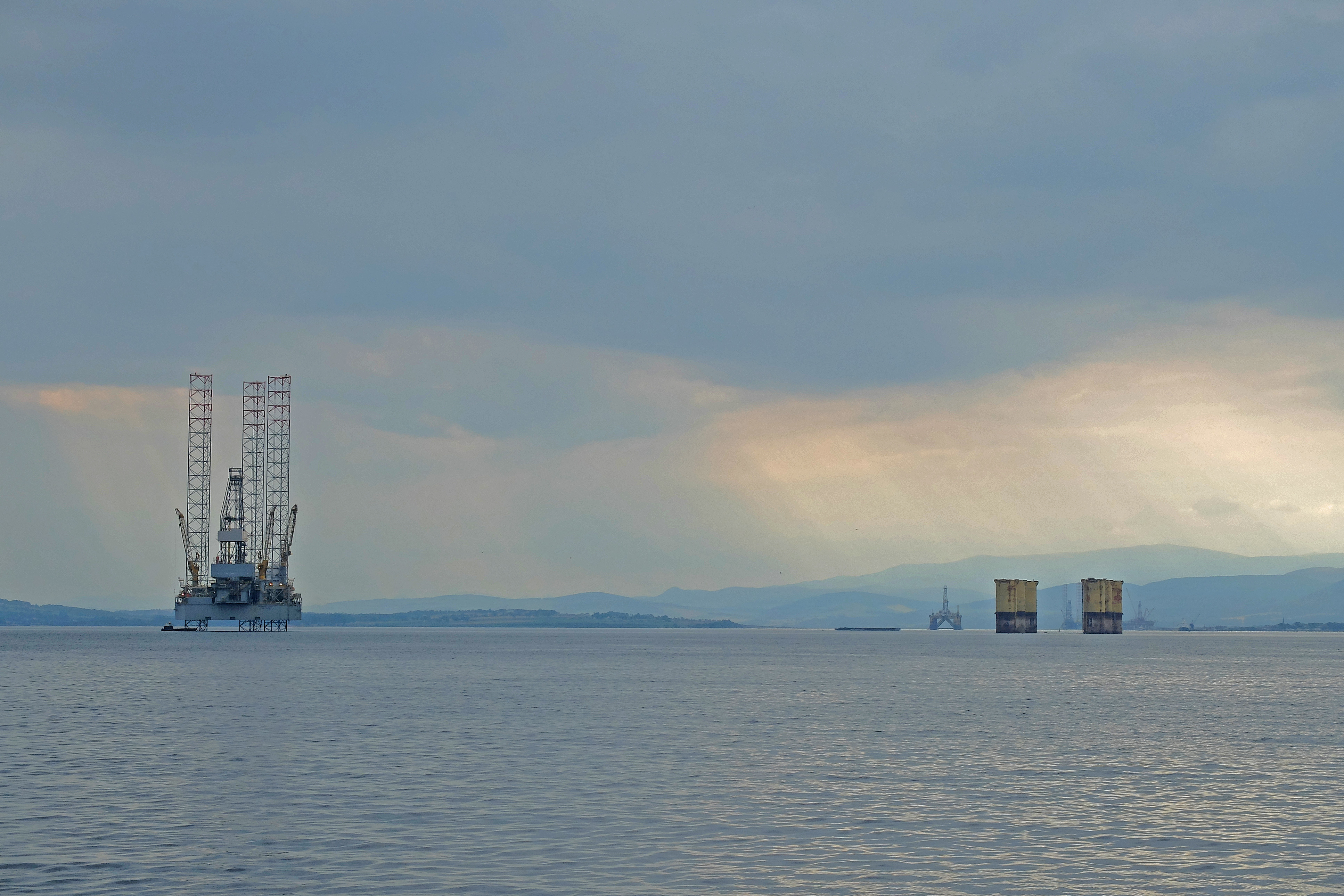 My only half-serious climb of the day took me to Castlecraig and a brief chat with a lovely woman from Northumberland who came rushing from her garden with two spaniels and an offering of flapjacks. I then dropped down to the Cromarty Firth complete with a plethora of jack-up and semi-submersible drilling rigs either sitting at anchor awaiting their next job or in dock at Nigg undergoing maintenance. A small turntable ferry took me over to Cromarty where Kate sat on the rocks to greet me on the slipway.