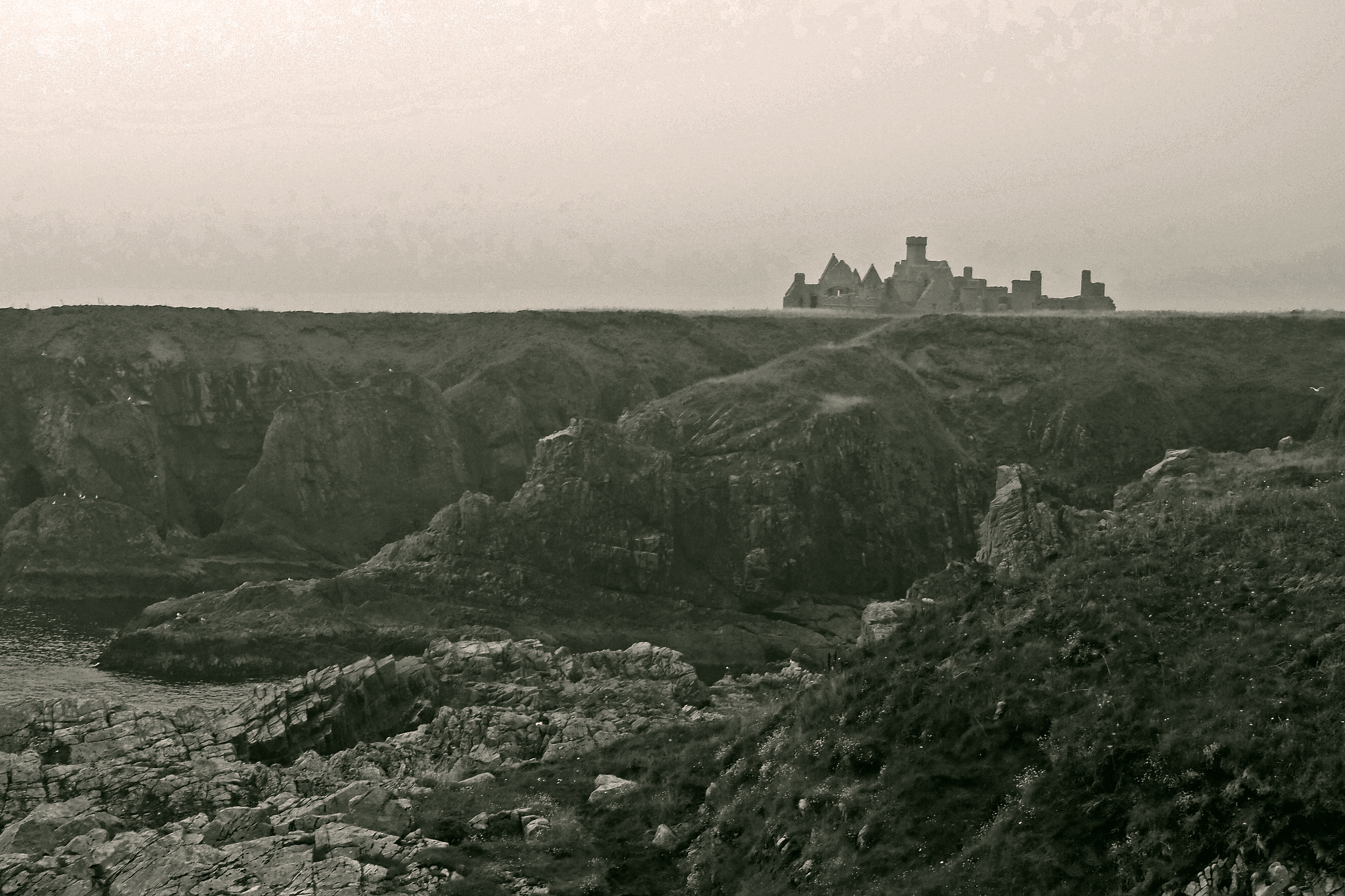 To add insult to irritation I had picked the wrong boots for the day. With knee-high wet grass the best the path could offer, my feet were soon squelching merrily and I was relieved to reach the roads around the popular Stonehaven and it’s attractive oversized geometric harbour. It was but a short walk over the cliff to Dunnottar Castle and a strange but welcome request from a Japanese tourist to take his picture.  It was then lanes and a rather dreaded foggy walk alongside the A92 to Inverbervie and a very tired but welcome evening with Bob and a lasagne.