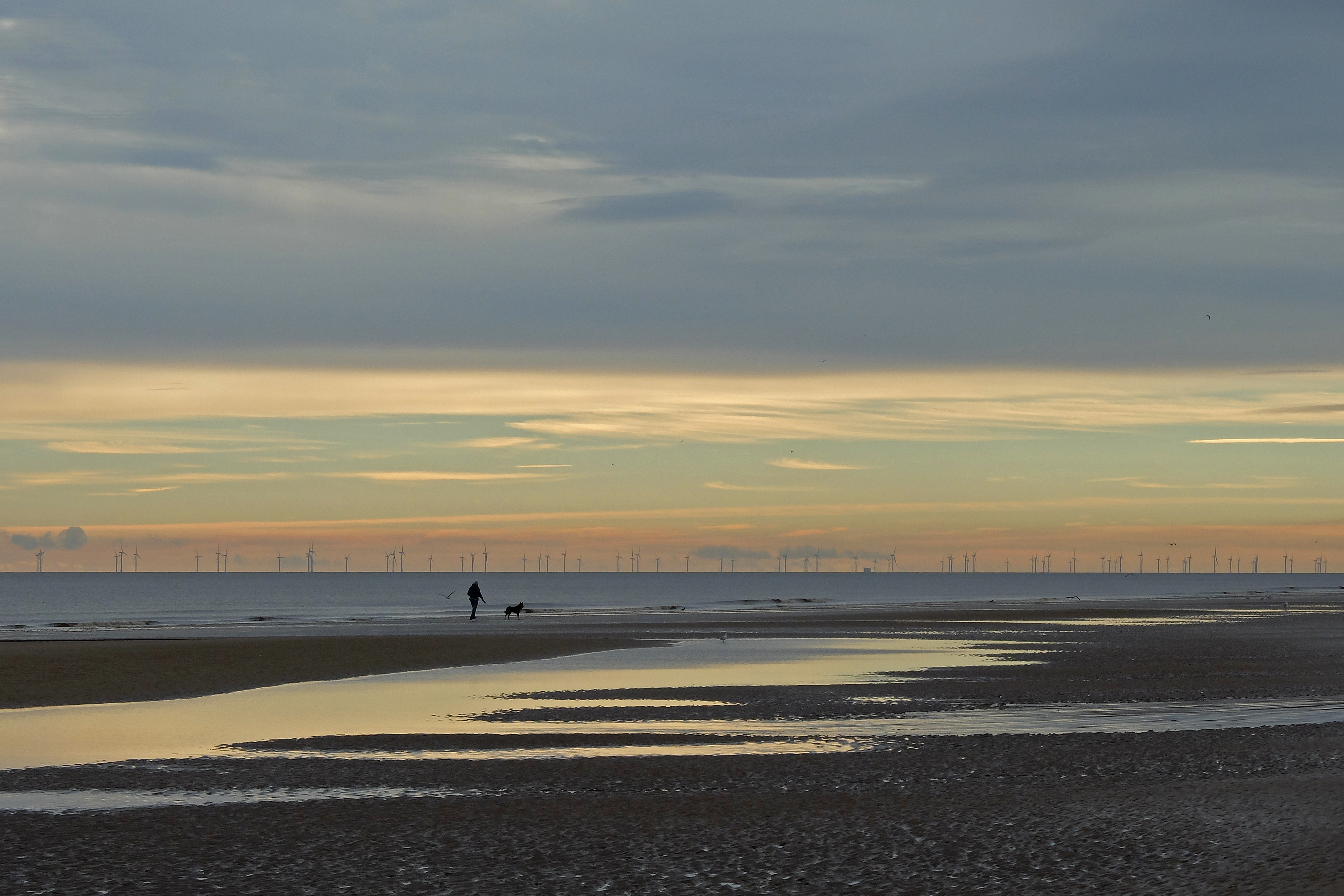 After one close brush with a scooter nearly resulted in an embarrassing injury which could have prematurely ended this walk of mine, I was glad to return to the beach. The dunes and the sea wall masked the land from my gaze and the view out to sea comprised one hundred and twenty-five wind turbines (I counted twice), twelve of which weren’t working. To be frank the rest of the day was dreary and I spent most of my time wandering the tide line on the look out for pretty shells.
